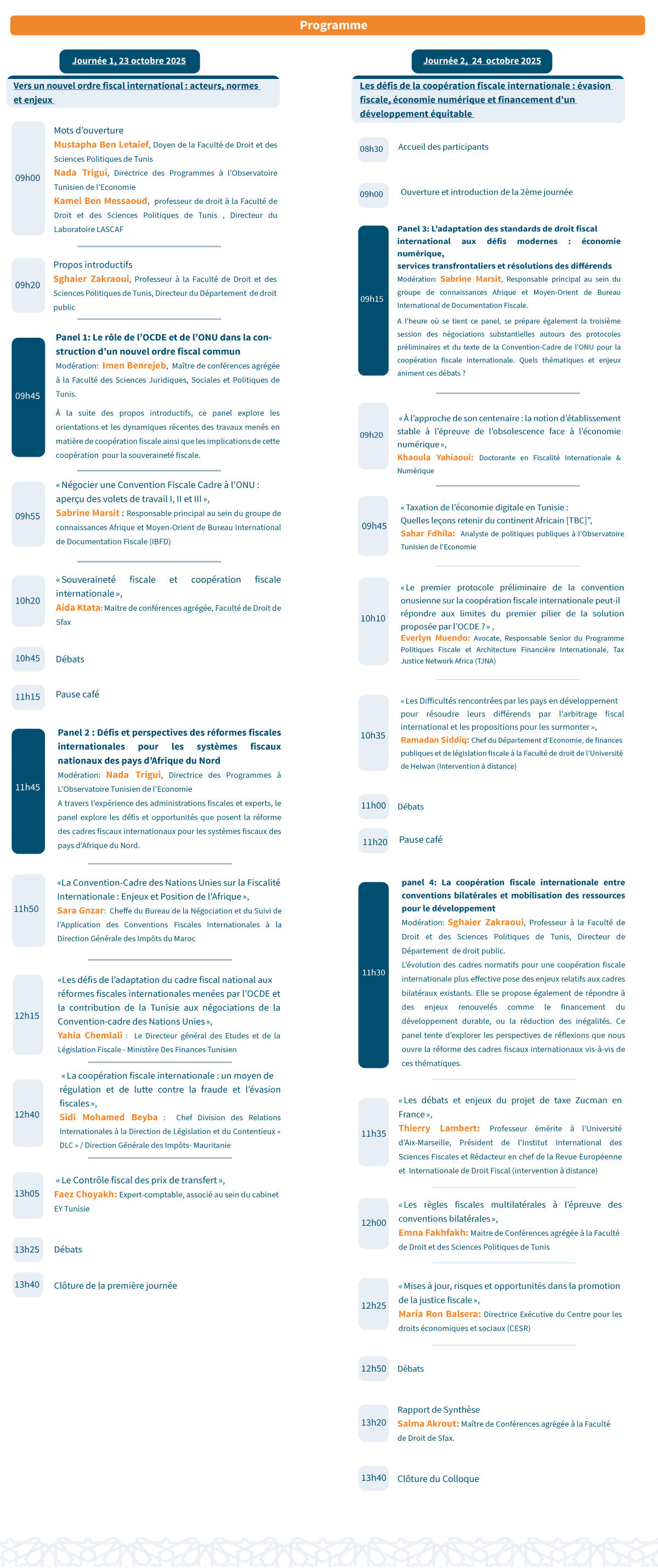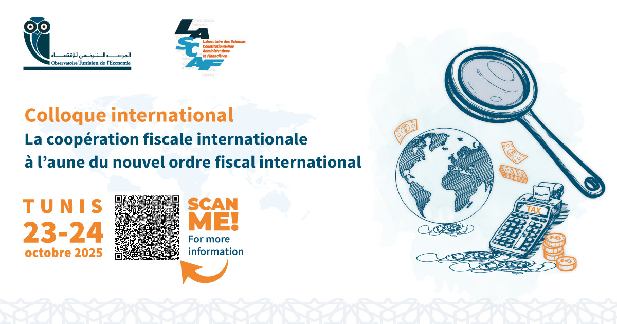Pour des pays tels que la Tunisie et les pays d’Afrique du Nord, confrontés à la nécessité d’accroître la mobilisation des recettes fiscales dans un contexte de déficit budgétaire et d’endettement, l’engagement dans cette dynamique apparaît particulièrement crucial. C’est dans ce cadre que l’Observatoire Tunisien de l’Économie, en partenariat avec le laboratoire LASCAF de la Faculté de droit et des sciences politiques de Tunis (Université Tunis El Manar), organise un colloque international, les 23 et 24 octobre 2025 à Tunis, intitulé « La coopération fiscale internationale à l’aune du nouvel ordre fiscal international ». Ce colloque réunira des universitaires, des experts, des praticiens et des représentants de la société civile afin d’analyser les contours et les perspectives de ces réformes du système fiscal international.